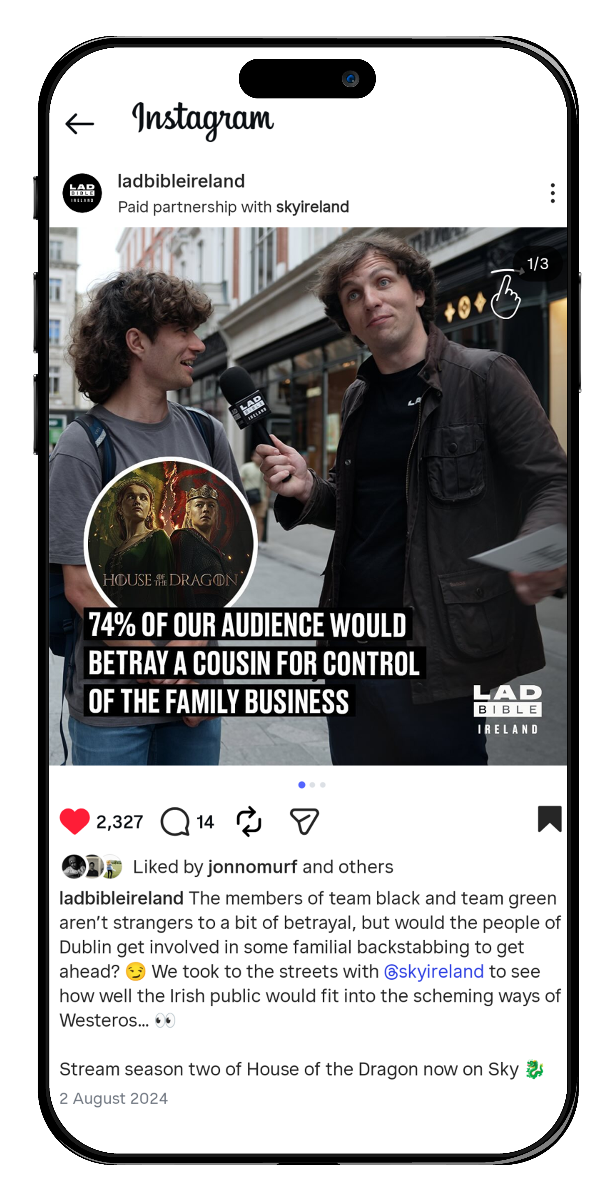 The campaign launched with creator Garron recapping Season 1 through his distinct Irish humour, bringing a conversational, irreverent tone to the world of Westeros. Collaborations with Weird Ireland further explored the parallels between Irish mythology and the show, grounding fantasy in familiar cultural references.