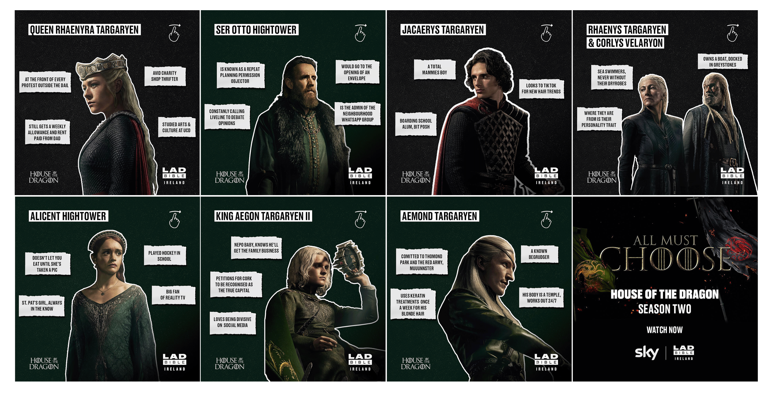 Rather than treating House of the Dragon as distant fantasy, the campaign drew parallels between Westeros and Ireland. Shared themes of loyalty, betrayal and power were rooted in Ireland’s own myths, rivalries and characters that would not feel out of place in Westeros.